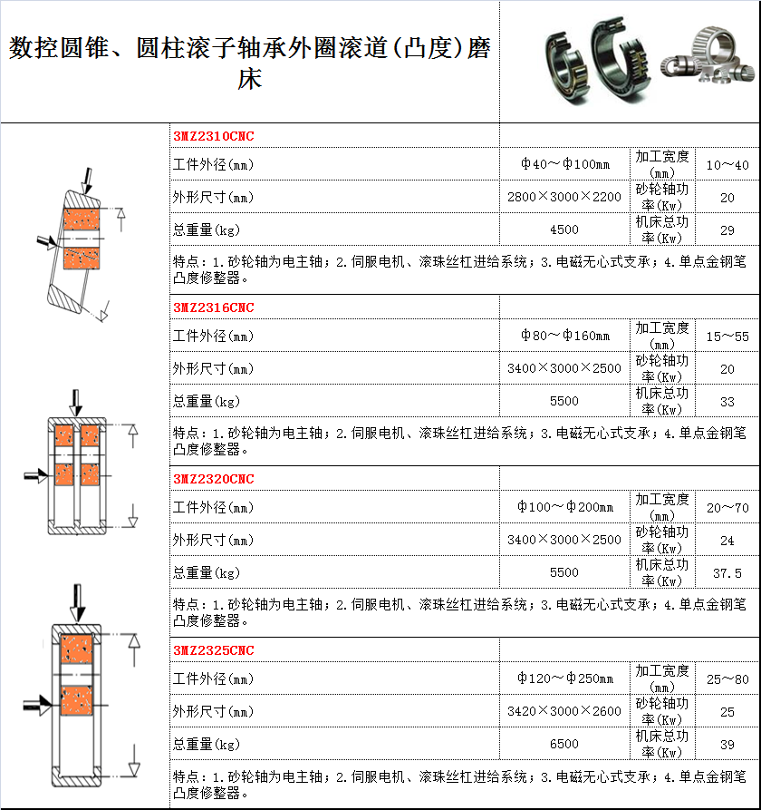 用途:磨削圓錐、圓柱滾子軸承外圈的滾道(凸度)